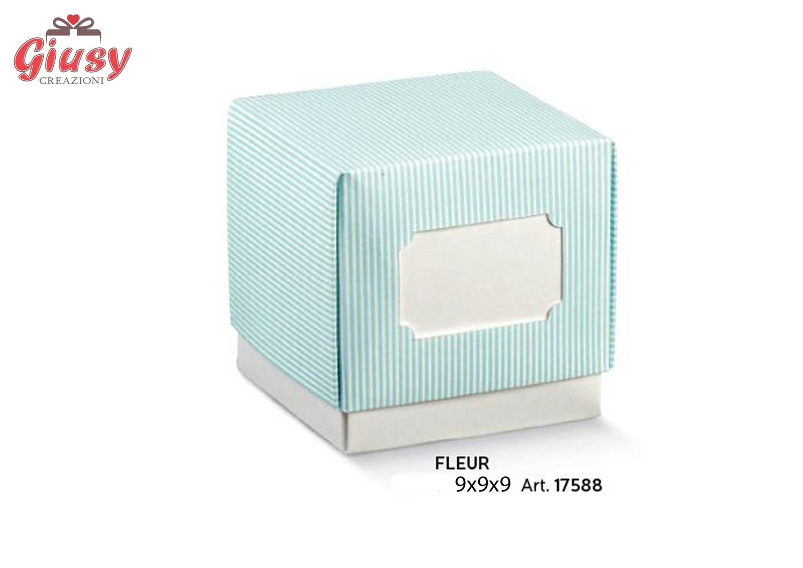 Scatolina Fleur Millerighe Colore Azzurro 9x9x9 Cm
