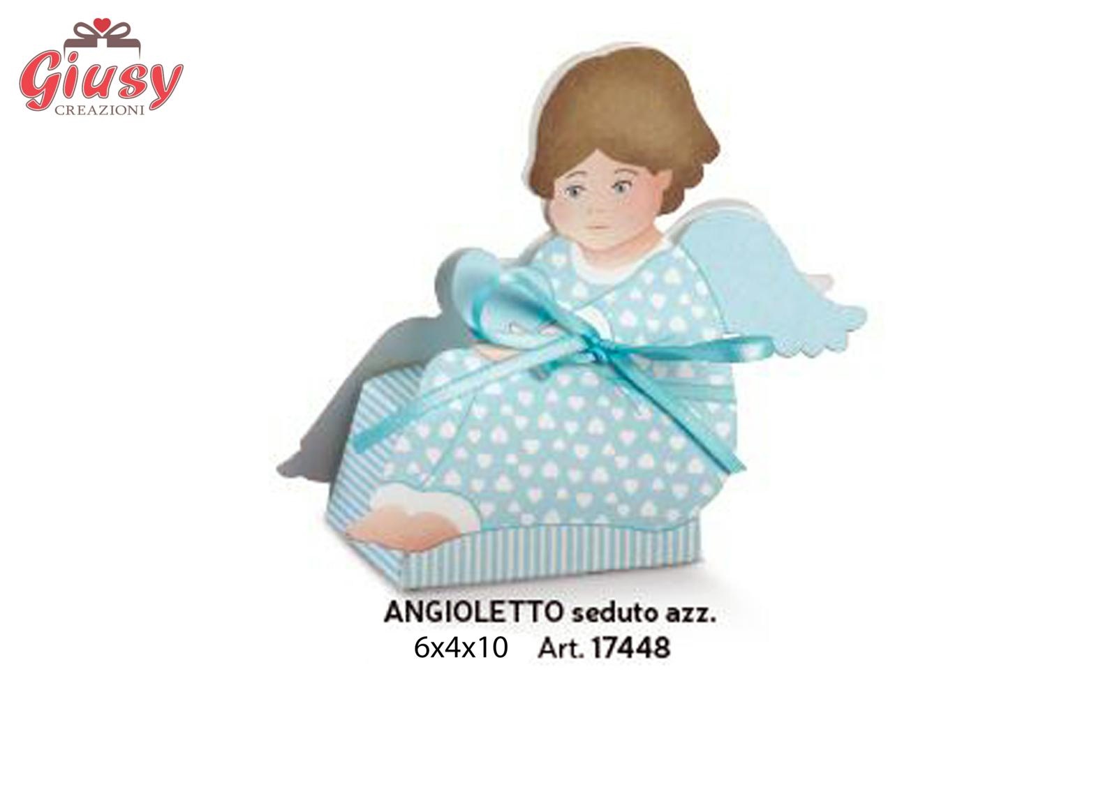 Scatolina Portaconfetti Angioletto Seduto Colore Azzurro 6x4x10 Cm 10*200