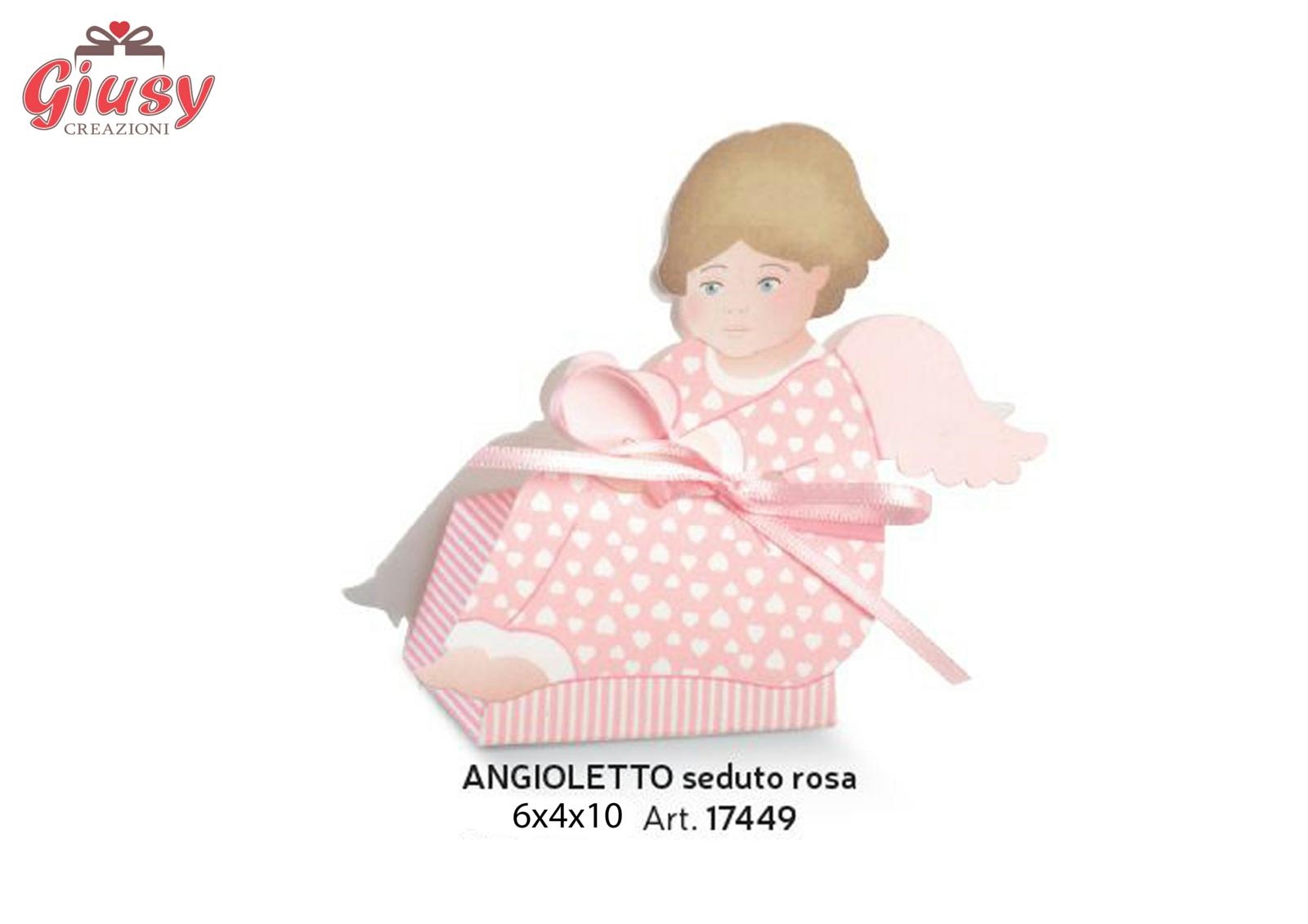 Scatolina Portaconfetti Angioletto Seduto Colore Rosa 6x4x10 Cm 10*200