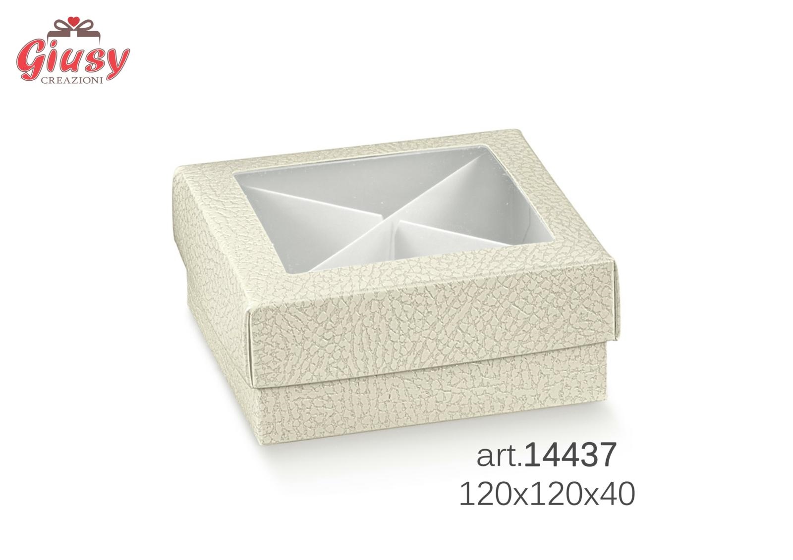 Scatola Fondo E Coperchio In Cartoncino Decoro Pelle Bianca Con Finestrav In Pvc + Inserto 120x120x40