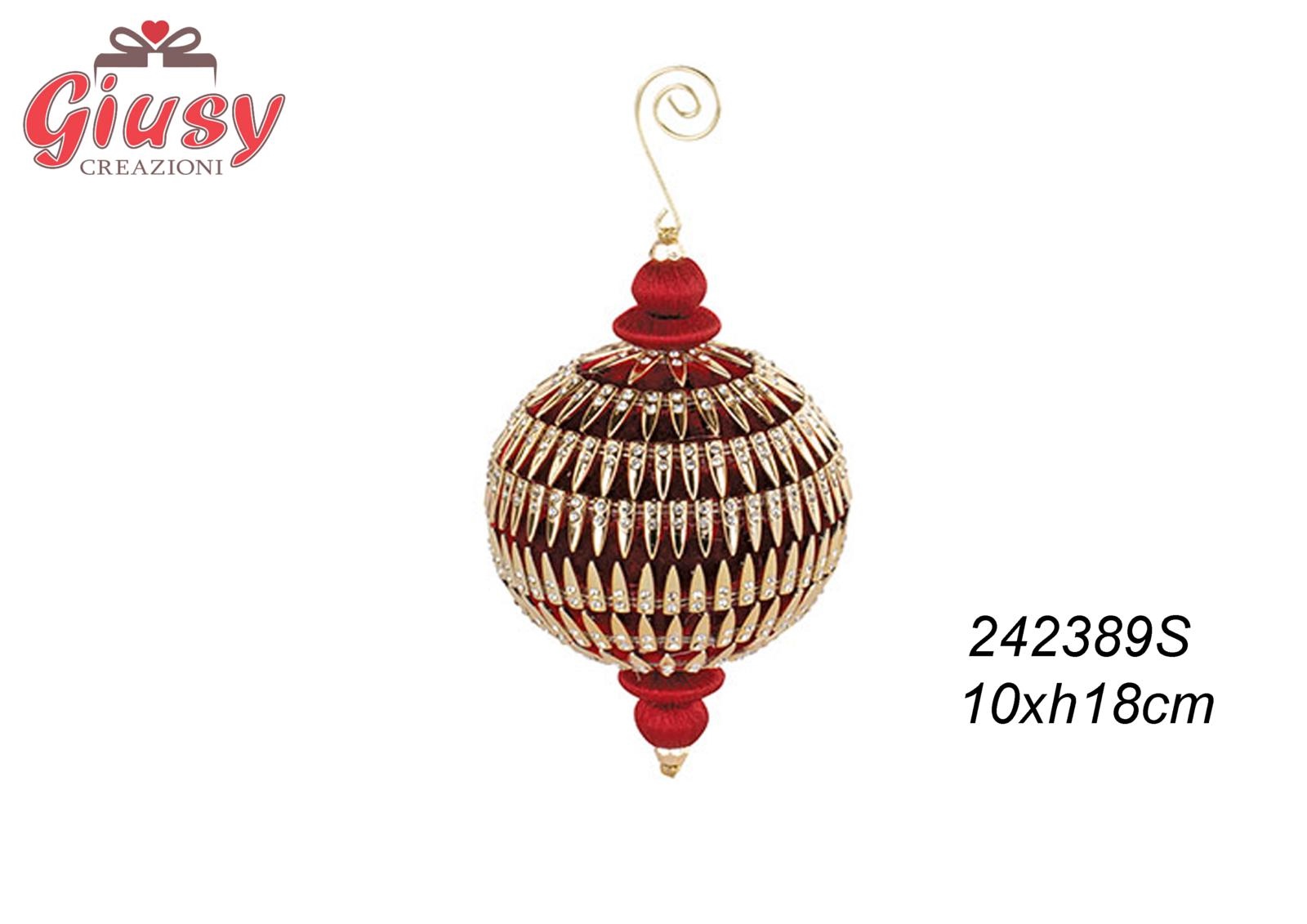 Sfera In Velluto Color Bordeaux E Oro, Diamentro 10 X H 18 Cm