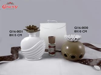 Profumatore In Porcellana Con Tappo Margherite 8x10 Cm + Essenza Completo Di Bauletto