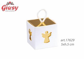 Scatolina Bianca Interno Oro Con Cordino Decoro Angelo 5xh.5 Cm