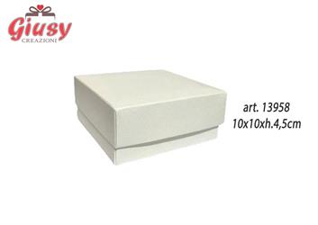 Scatola Fondo e Coperchio Decoro Seta Bianca 10x10xH.4,5 Cm 10*50