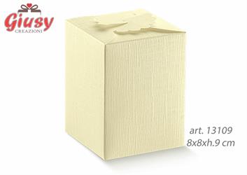 Scatola Pieghevole In Cartoncino Decoro Seta Avorio 10x10xh.19 Cm