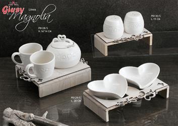 Set Zucchieriera 16x14 Cm Con Tazze Bianca Con Cuori Su Base In Legno Completo Di Box 1*24