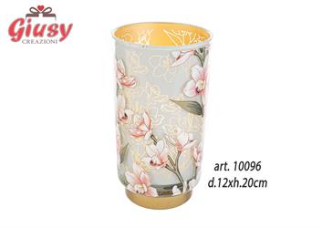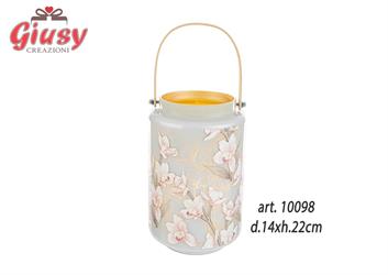 Lanterna In Vetro Con Decoro Fiori d.14xH.22 Cm 1*9
