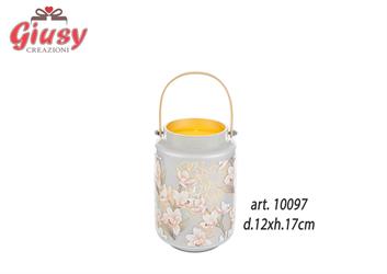 Lanterna In Vetro Con Decoro Fiori d.12xH.17 Cm 1*12