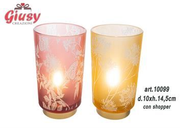 Lampada In Vetro Decorato 2 Soggetti Assortiti d.10xH.14,5 Cm Completa Di Shopper 2*24