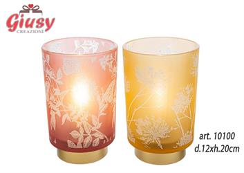 Lampada In Vetro Con Decoro Fiori d.10xH.14,5 Cm Completa Di Shopper 1*24
